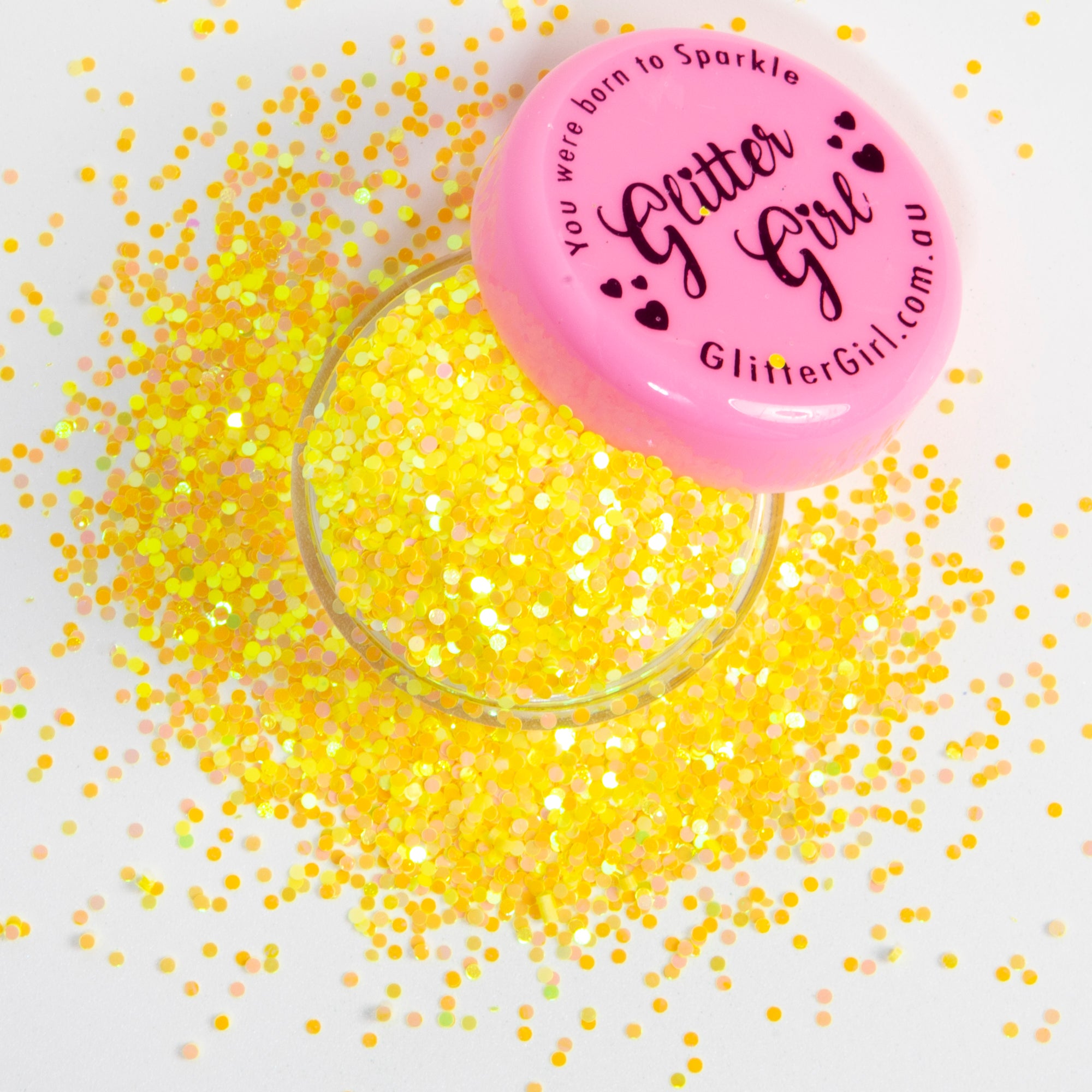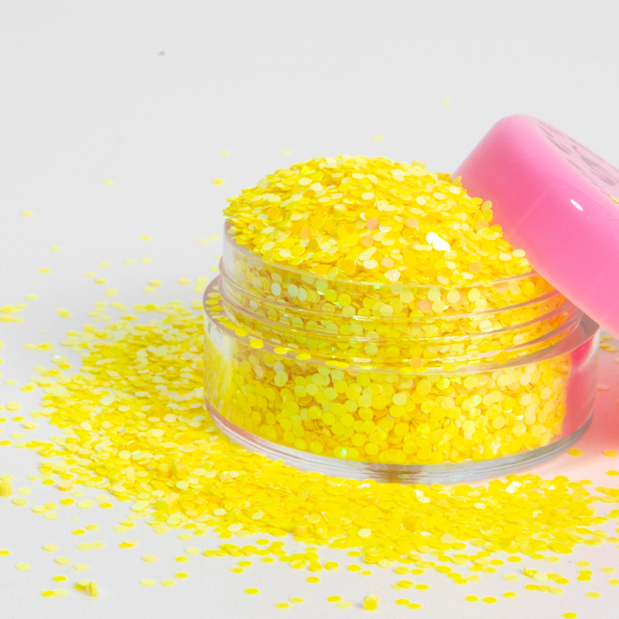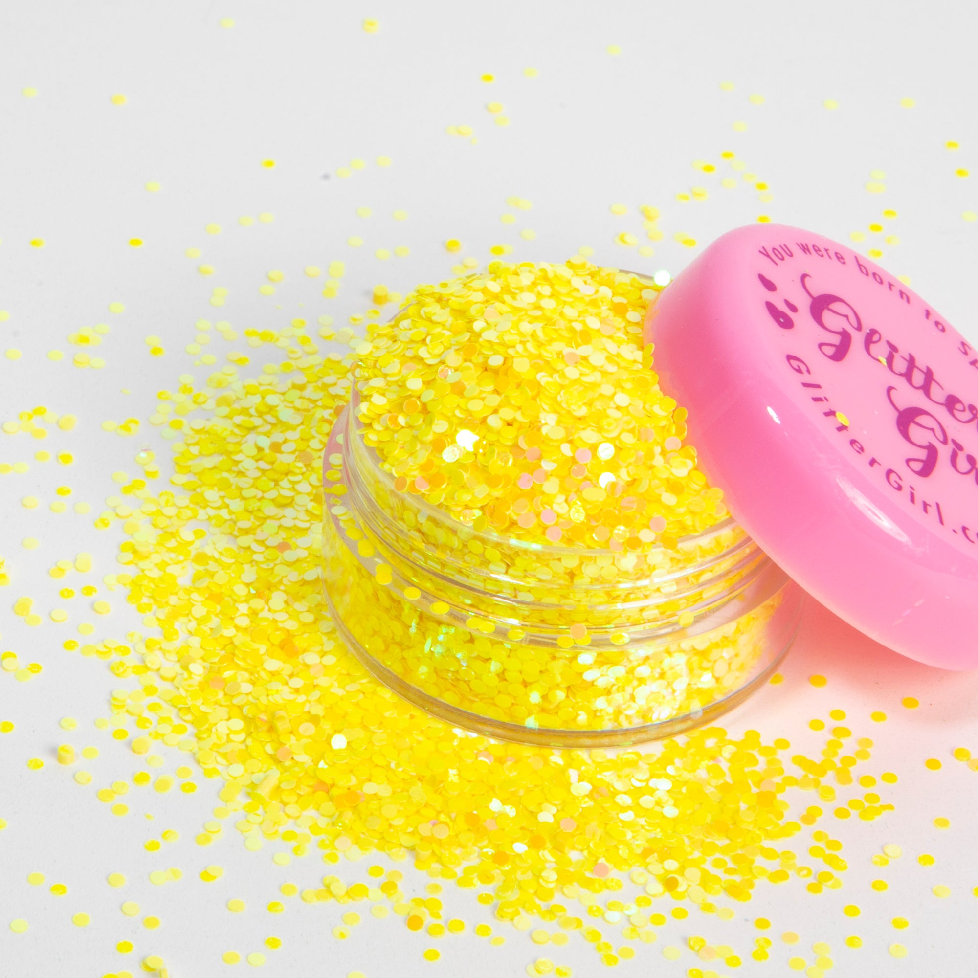 Get ready to shine with Glitter Girl's Loose Glitter in "Banana Yellow," a dazzling cosmetic eco glitter featuring vibrant yellow 1mm dots. This cheerful and bold shade is perfect for adding a pop of sunshine to your sparkle collection.