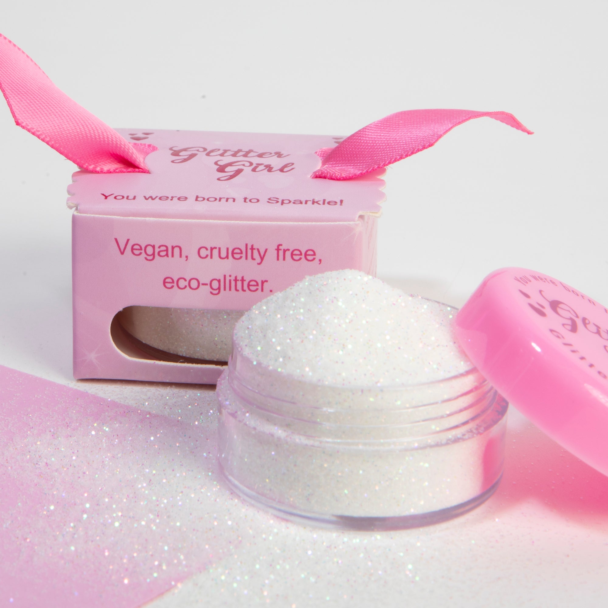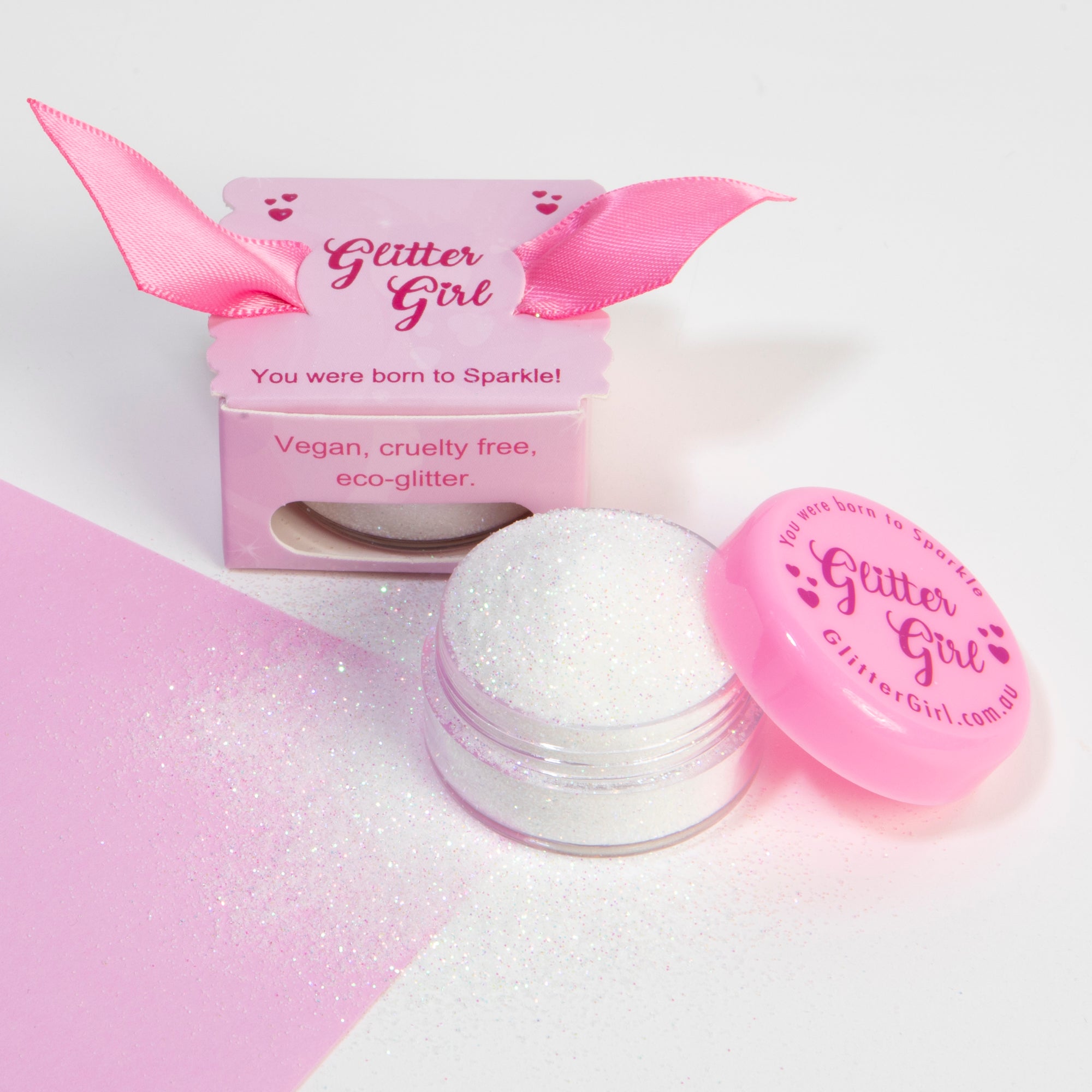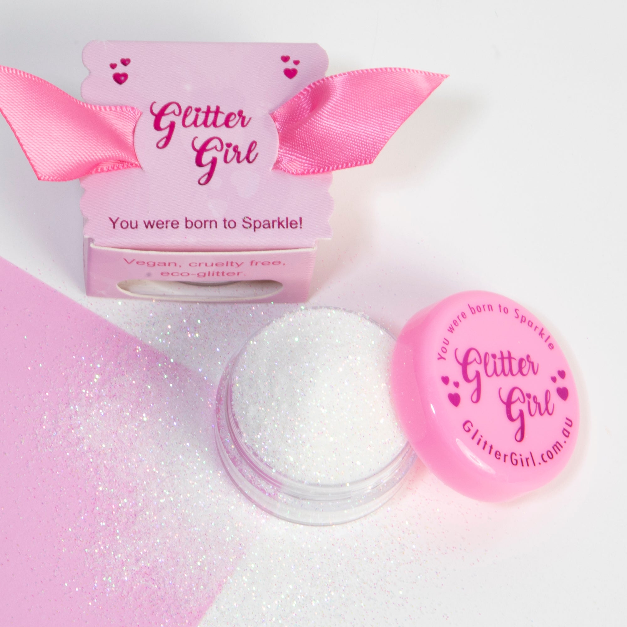 Get ready to shine with Glitter Girl's Loose Glitter in "Ice Queen," a dazzling cosmetic eco glitter featuring fine white rainbow holographic particles. This elegant and ethereal glitter is perfect for creating frosty, magical looks fit for royalty.