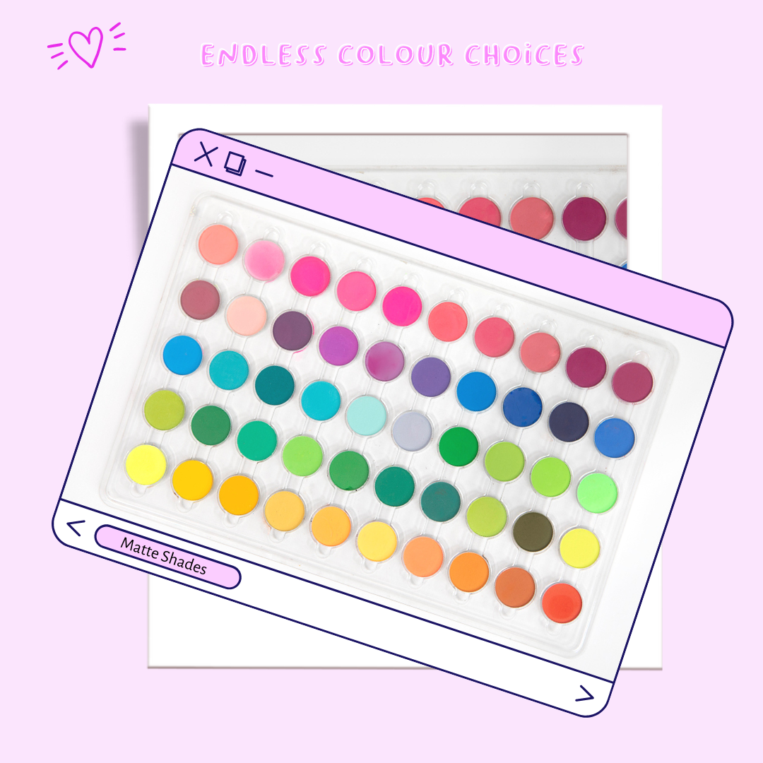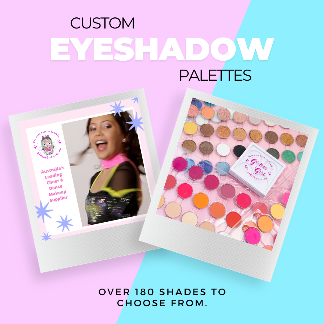 Get your shadow skills bloomin' with this easy-to-use choose Custom Cheer & Dance eyeshadow palette for your Cheer or Dance team. Choose from 175 colours and shades in Pressed glitter, brightening Matt & microshimmer shades that will become your everyday essentials