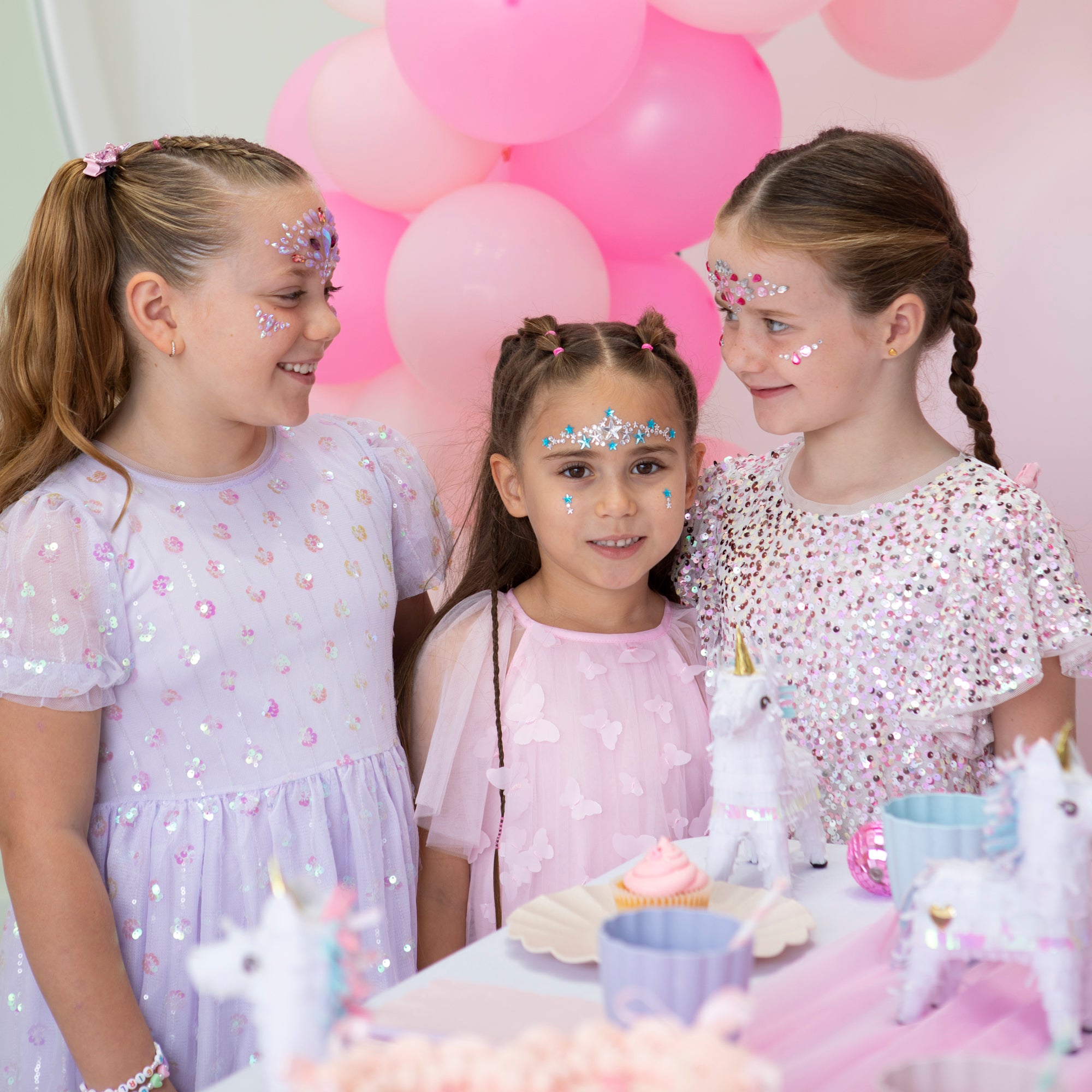 Get ready to sparkle with Glitter Girl’s Coconut Ice Face Gems! These self-adhesive gem pieces are the cutest combination of blue and silver stars, adding a touch of dreamy magic to any look. Perfect for festivals, parties, dance performances, or any time you want to twinkle like a starry night!