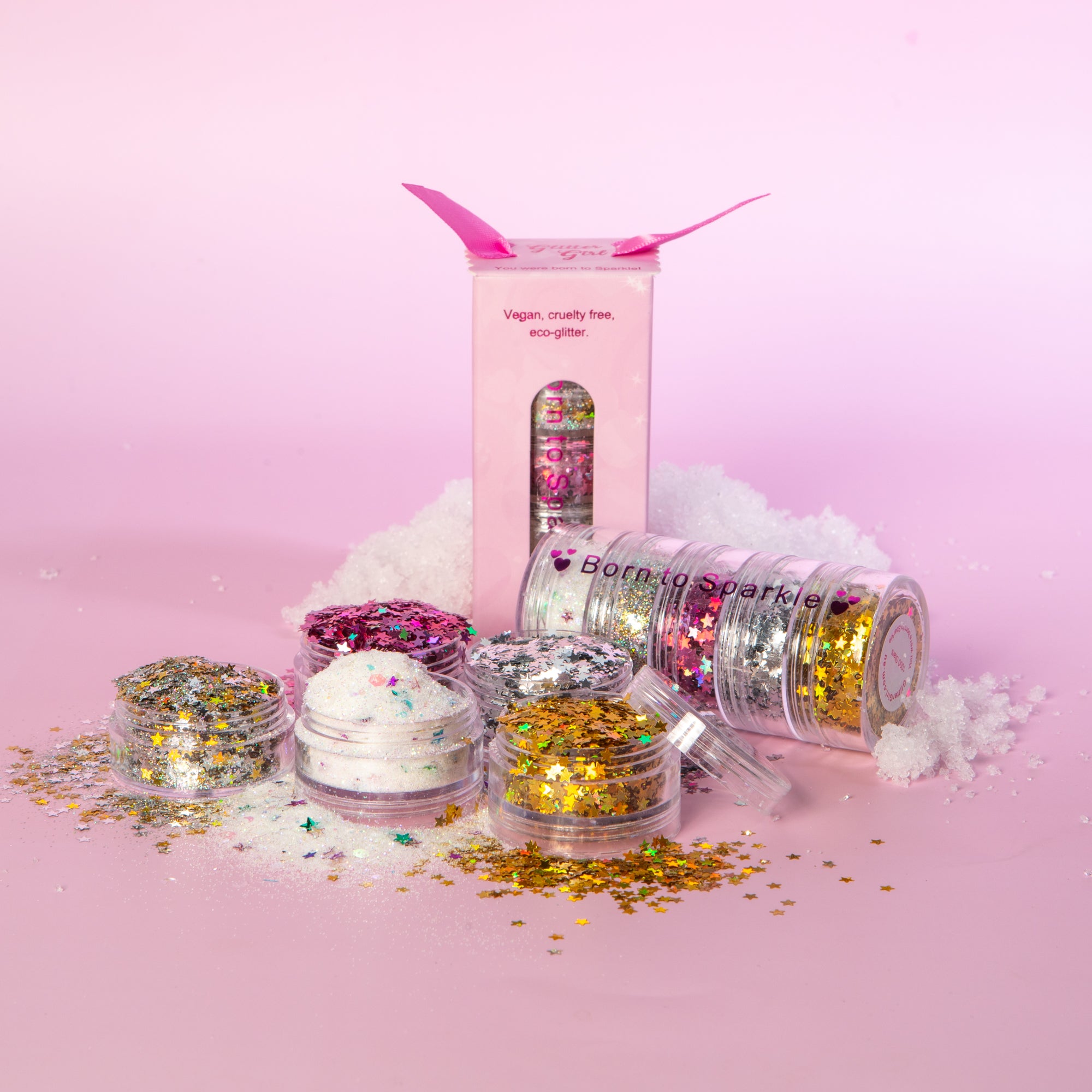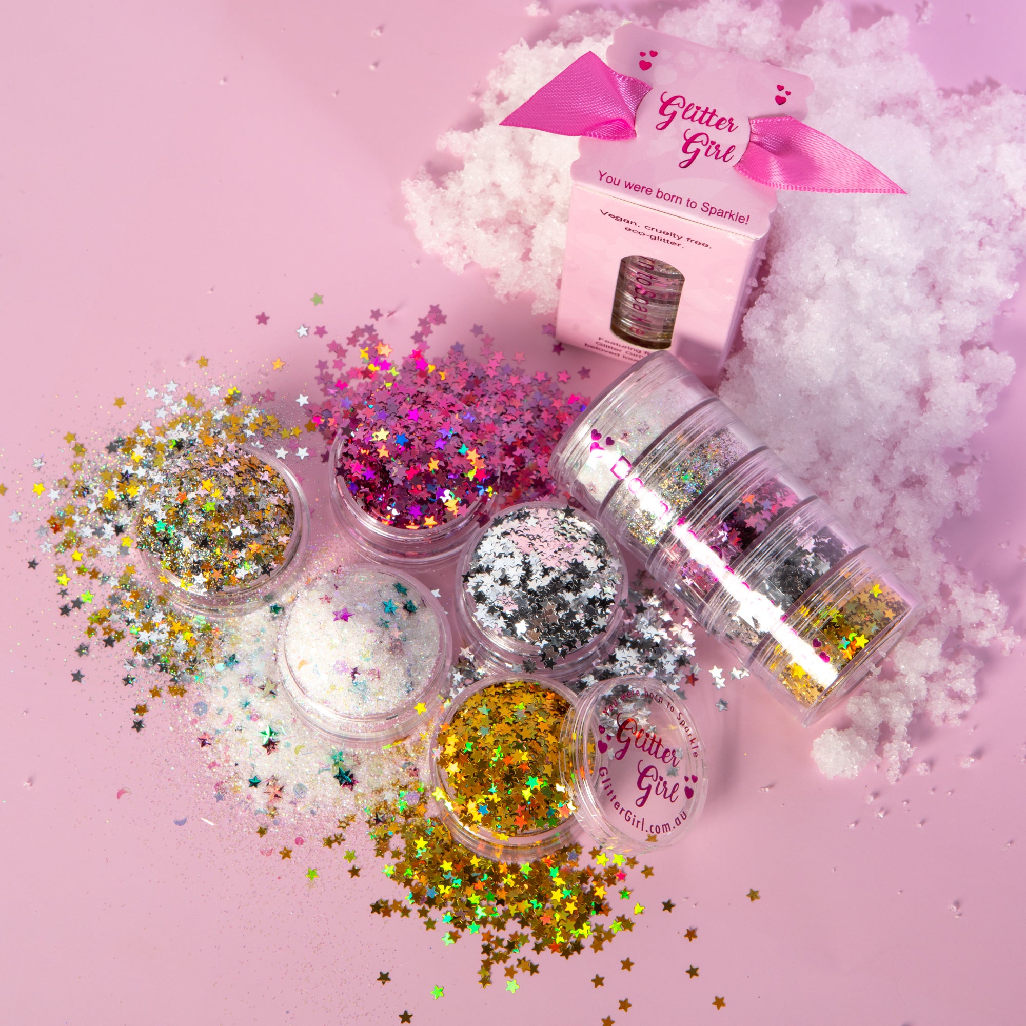 Wish upon every sparkle! The 1000 Stars Christmas Collection features 5 of Glitter Girl’s most magical, twinkly glitter blends inspired by holiday wishes, starry nights, and festive fairy lights.