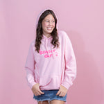 Your new favourite hoodie has arrived, introducing the Glitter Girl Marshmallow puff hoodie! Get ready to shine like a superstar in this baby pink jumper with puff print, these are all about comfort and style.