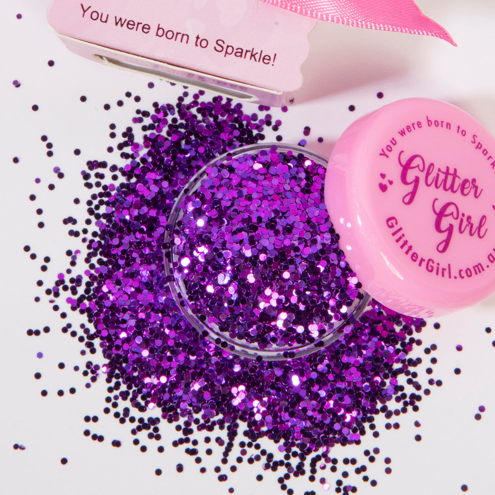 Glitter Girl’s fabulous Unicorn Glitter in “Wild Indigo" is a glitter in a glistening deep purple shade.. So pretty, you'll never want to take it off.