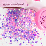 Get ready to shine with Glitter Girl's Loose Glitter in "Cupcake," a dazzling cosmetic eco glitter mix featuring soft pastel pink hearts in various sizes. This sweet and playful blend is perfect for adding a touch of whimsy and sparkle to any look.