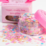 Get ready to shine with Glitter Girl's Loose Glitter in "Funfetti," a dazzling pastel mix of dots and hexagons featuring soft pinks, blues, and a playful pop of baby yellow. This cheerful blend adds a sprinkle of joy and sparkle to any look.