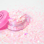 Get ready to shine with Glitter Girl's Loose Glitter in "Marshmallow," a dazzling cosmetic eco glitter featuring soft baby pink shapes in a variety of sizes. This sweet and delicate mix is perfect for creating whimsical, pastel-inspired looks.