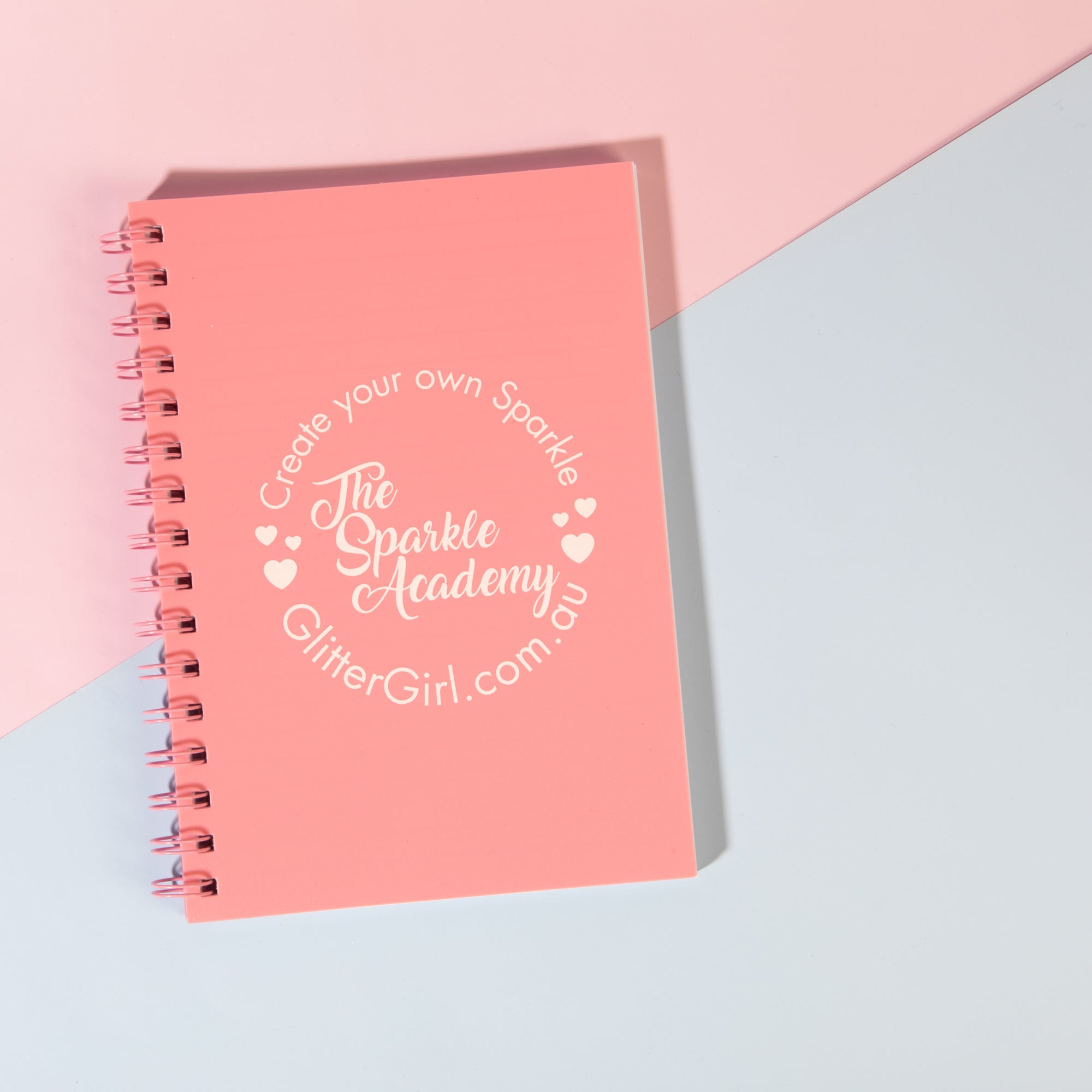 1 x Sparkle Academy Pink Hardcover Spiral Notebook: Your go-to place for brainstorming, planning, and keeping track of your progress throughout the course.