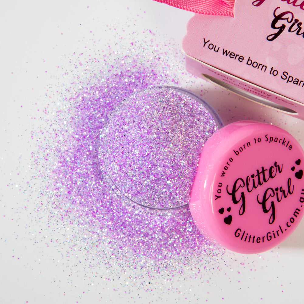 Get ready to shine with Glitter Girl's Loose Glitter in "Sparkling Purple Tail," a dazzling cosmetic eco glitter in a fine, glistening reflective lavender purple shade. This soft and magical glitter is perfect for adding a delicate, enchanting sparkle to your look.